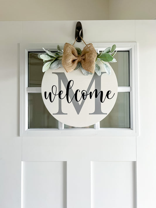 Wooden Welcome Sign with Personalized Letter